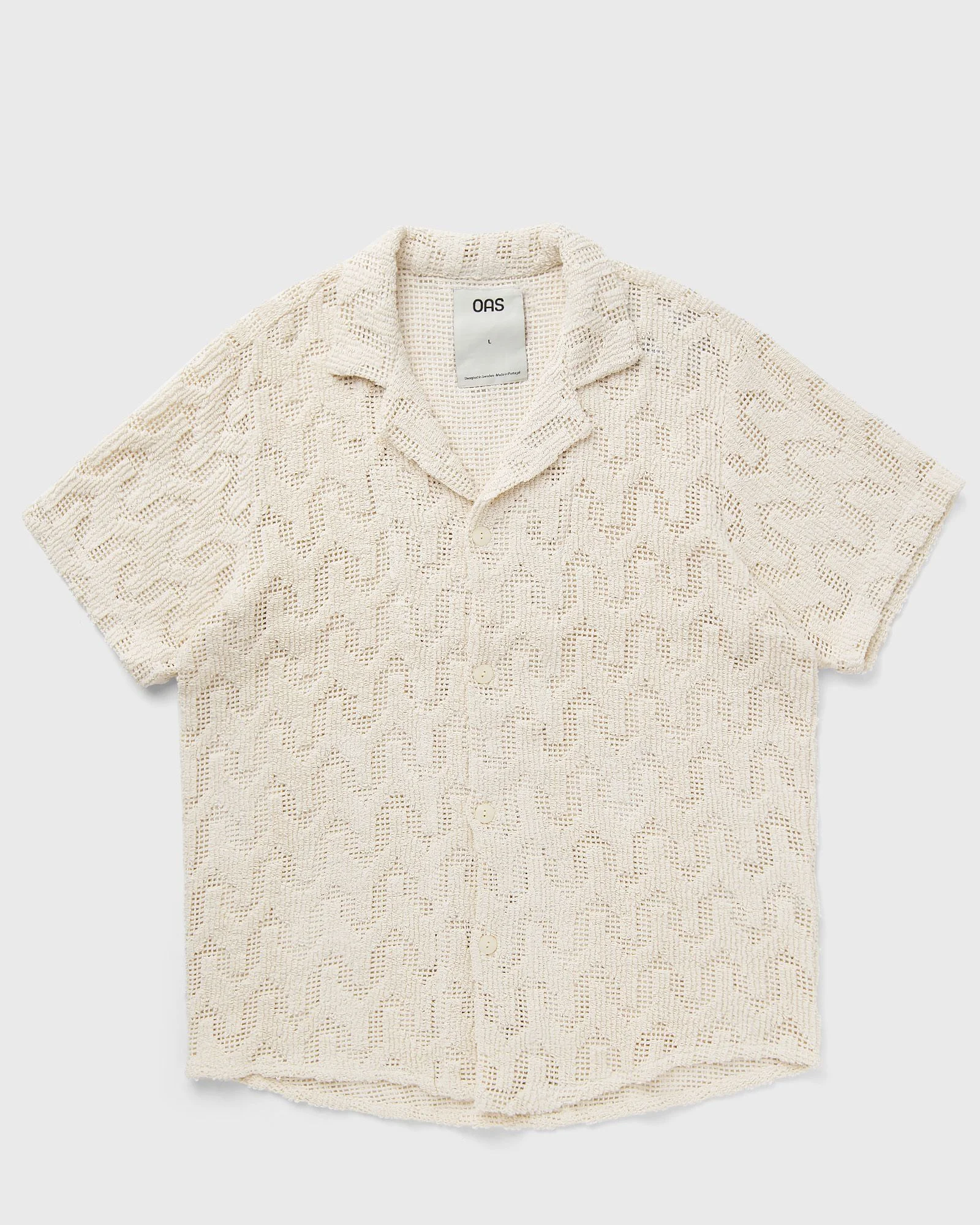 The OAS Atlas Cuba Crochet Shirt features a tactile pattern of geometric waves, brought to life in a heavyweight woven cotton crochet fabric. It’s designed with a resort collar and buttons running down the front. - Heavyweight woven crochet - Breathable - Resort collar - Curved hemline - Made in Portugal - Designed in Stockholm Article number: 7013-01 Gender: men Color: BEIGE Material: 100% Linen