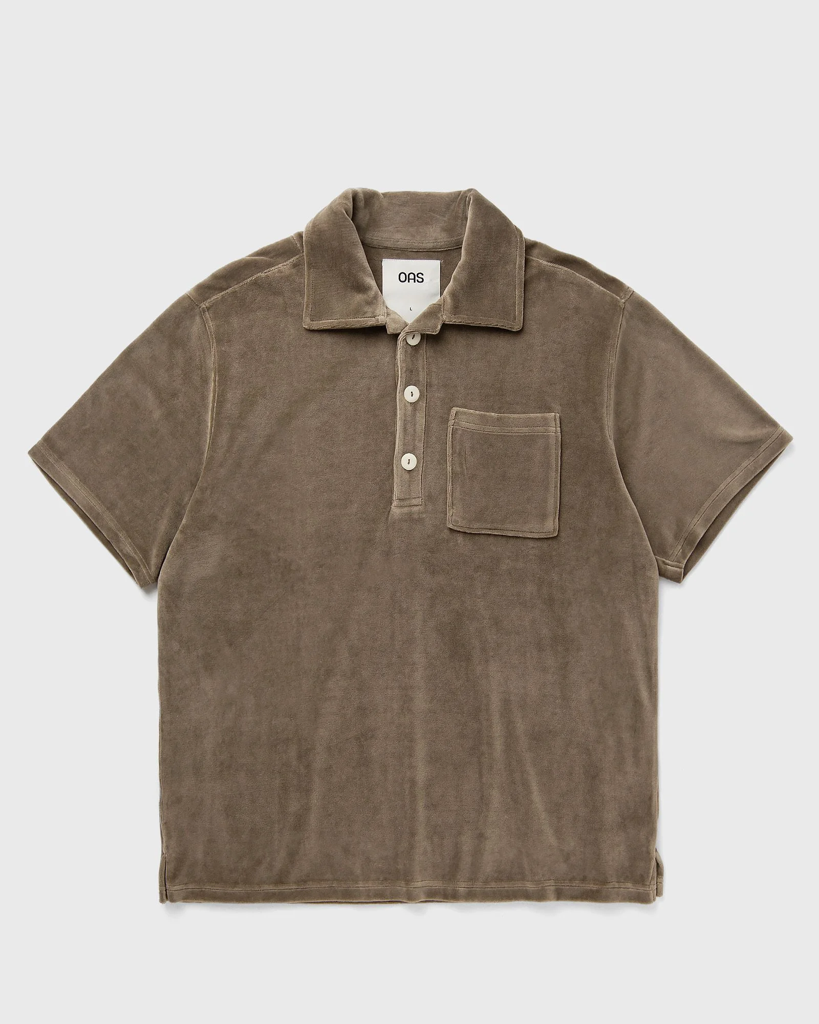 The OAS Morel Girona velour shirt is characterized by a particularly soft velour knit fabric. The design details include a pointed collar, a button placket and a chest pocket. - Medium-weight knitted velour - Buttoned front placket - Chest pocket Article number: 7011-05 Gender: men Color: BROWN Material: 100% Cotton