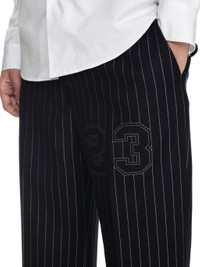 These lined and tailored pants are crafted from a wool blend with pinstripes and the number 23 at the hip. Made in Italy. MATERIALS Lining: 48% Cupro Lining: 52% Viscose Outer: 80% Wool Outer: 20% Polyester Lining: 100% Cotton FITTING Model Gabriel Noah wears size 48 Height 6' 1" (186 cm) Chest: 33" (85 cm) Hips: 35" (90 cm)