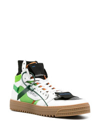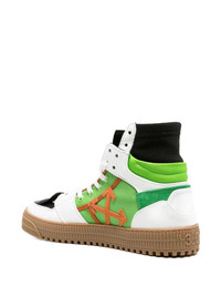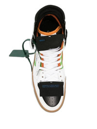 3.0 Off-Court sneakers Featuring signature elements of the Off-White brand, such as a Zip Tie tag and Arrows motif, these Off-Court 3.0 sneakers are instantly recognisable. The placement of these across the shoe fits into the brand's concept of 'embracing the now in a sophisticated manner'. Highlights - White/black/green - Calf leather - Panelled design - Signature zip tie tag - Signature arrows motif - Contrasting panel detail - Round toe - Front lace-up fastening - Ankle-length - Branded insole - Rubber sole Made in Italy Composition Outer: Calf Leather 100%, Fabric 100% Lining: Fabric 100%, Calf Leather 100% Sole: Rubber 100% SIZE & FIT Measurement HEEL 1.37 in(3.5 cm) HEIGHT 5.31 in(13.5 cm) Sole height 1.18 in(3 cm)