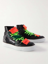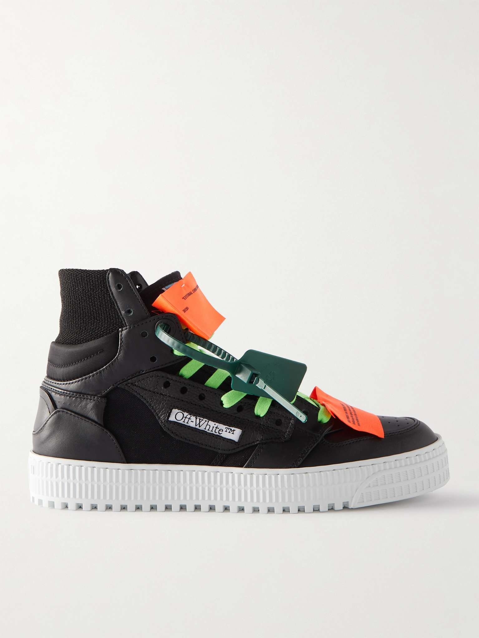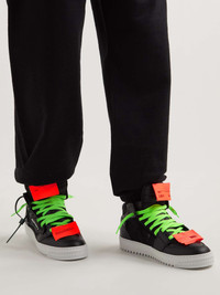 Off-White's '3.0 Off Court Supreme' sneakers combine elements of classic basketball styles with recognisable signature details - note the printed logo, arrow emblems, neon-orange factory labels and zip ties. They're crafted from a combination of suede, leather and shell in a high-top silhouette and have gripped rubber soles. Size & Fit - Fits true to size. Take your normal size - Only available in full sizes, go up to the nearest whole size if you take a half size - European sizing Details & Care - Black suede (Calf), leather (Calf) and shell - Designer emblems, leather linings, rubber soles - Lace-up - Style number: OMIA065S22LEA0031010