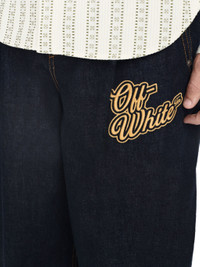 These 90s-inspired jeans have a baggy, tapered fit and are constructed from 100% cotton with a dark denim wash. A script logo features at the hip. Made in Italy. MATERIALS Lining: 35% Cotton Lining: 65% Polyester Outer: 100% Cotton FITTING Model Gabriel Noah wears size 32 Height 6' 1" (186 cm) Chest: 33" (85 cm) Hips: 35" (90 cm)