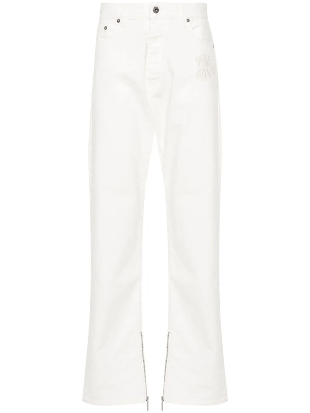 90's Logo Skate straight-leg jeans Highlights - Optical white - Stretch-cotton - Raw denim - Straight leg - Belt loops - Classic five pockets - Logo patch to the rear - Cuff zips - Button fly fastening Made in Italy Composition Outer: Cotton 98%, Elastane 2% Lining: Cotton 100% SIZE & FIT Model measurements Height 6 ft 0 in(1.84 m) Bust/Chest 35.82 in(91 cm) Hips 37 in(94 cm) Waist 28.34 in(72 cm) FittingInformation Designed with a straight leg, these jeans allow for an unrestricted and comfortable fit over the leg Constructed from stretch denim, this piece offers a stretch fit with durability This piece fits true to size – take your usual size