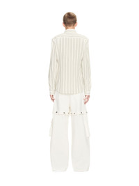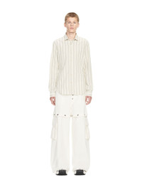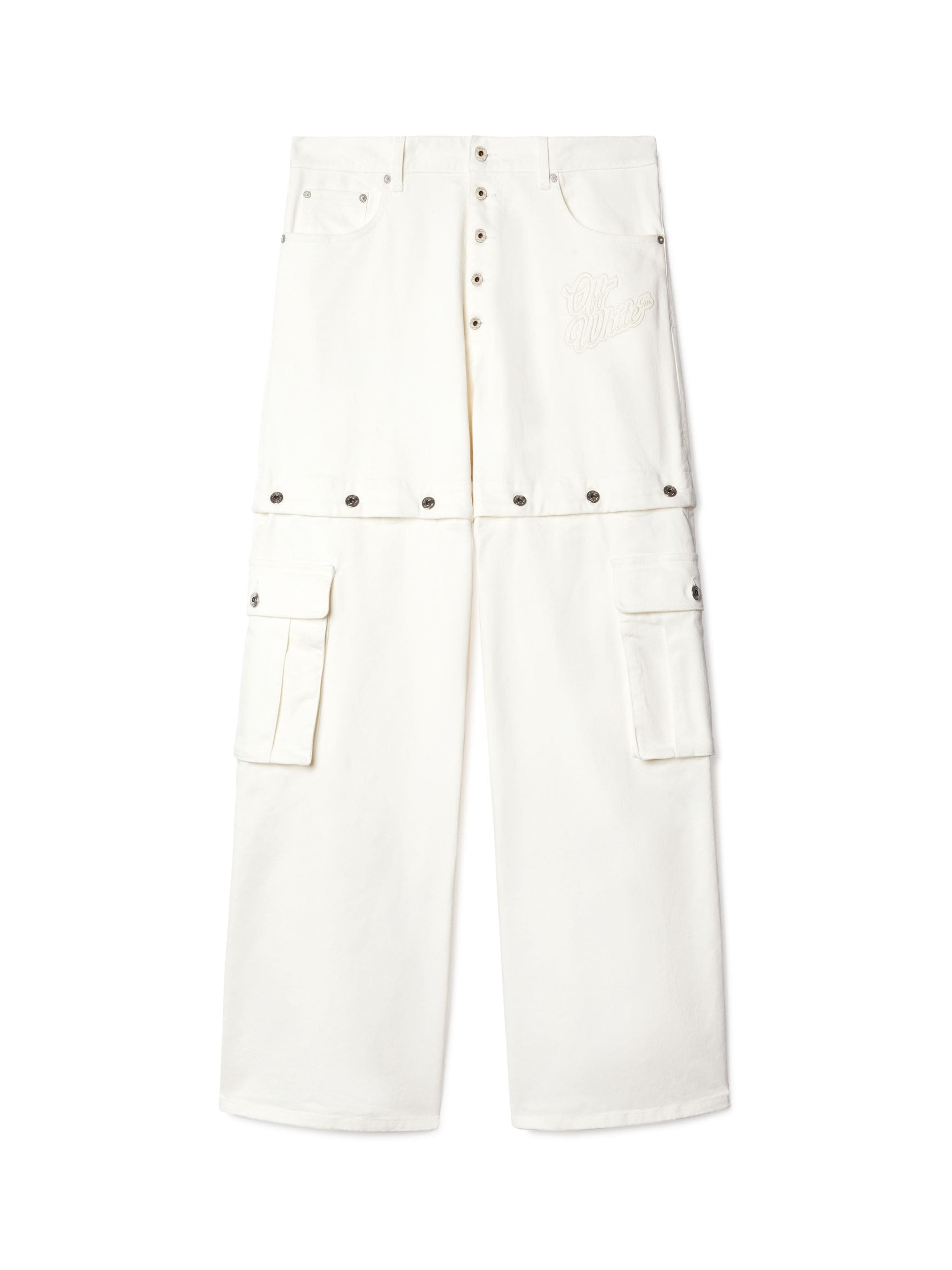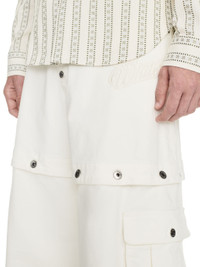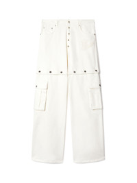 These 90s-inspired jeans have a baggy fit and feature popper detailing at the mid-thigh and fly. They are completed with cargo pockets and a monochromatic script logo at the hip. Made in Italy. MATERIALS Outer: 2% Elastane Outer: 98% Cotton Lining: 100% Cotton FITTING Model Gabriel Noah wears size 32 Height 6' 1" (186 cm) Chest: 33" (85 cm) Hips: 35" (90 cm)
