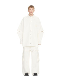 This 90s-inspired shirt is crafted from cotton with an oversized fit. It features button-fastening splits at the sleeves and an embroidered logo on the chest pocket. Made in Italy. MATERIALS 2% Elastane 98% Cotton FITTING Model Gabriel Noah wears size M Height 6' 1" (186 cm) Chest: 33" (85 cm) Waist: 27" (69 cm)