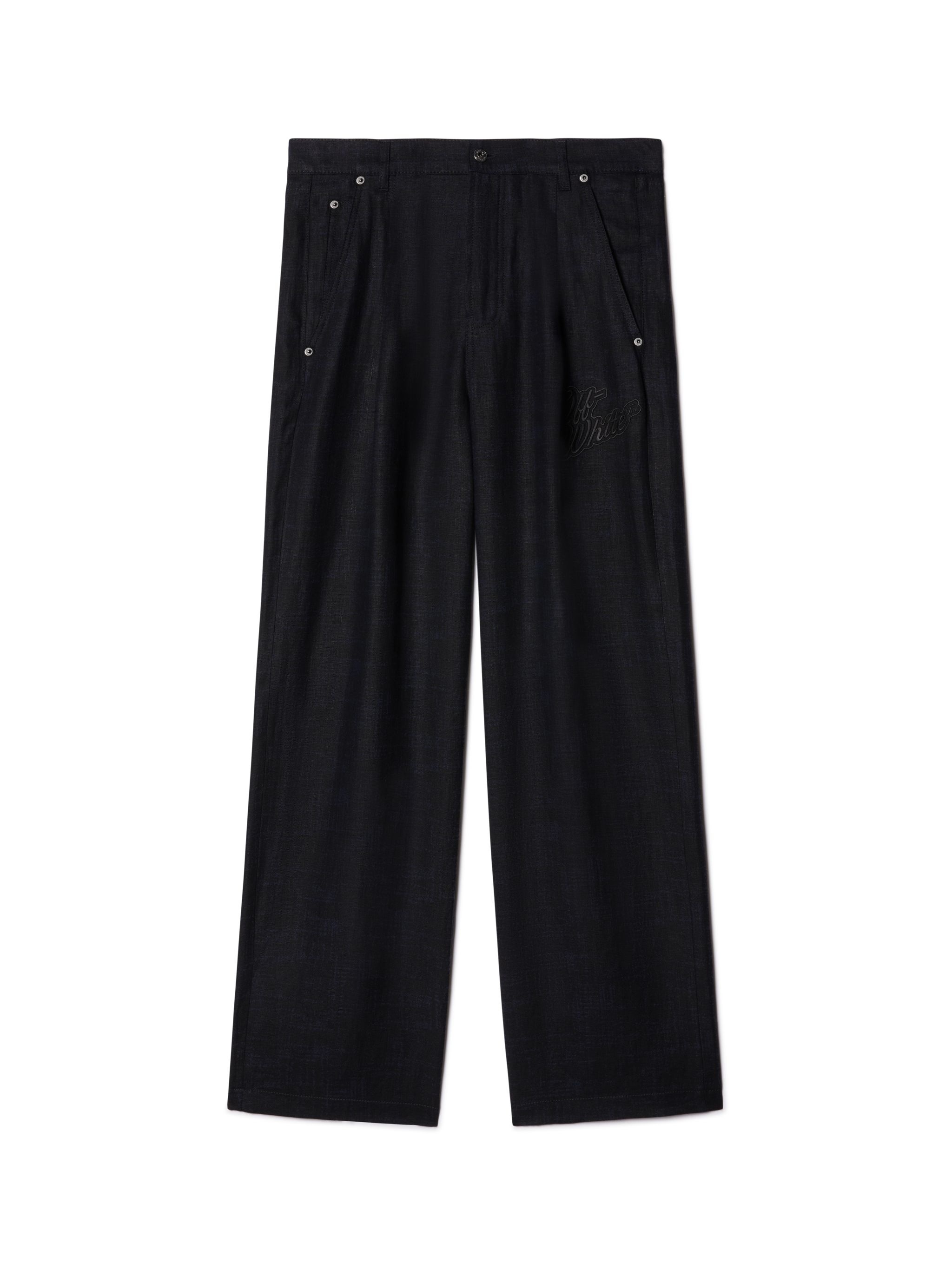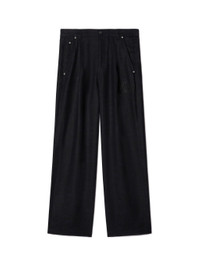 These loose fit tapered pants are crafted from 100% linen with a cotton-blend lining. They feature contrasting silver rivets at the pockets and a small logo on the thigh. Made in Italy. MATERIALS Outer: 100% Linen/Flax Lining: 65% Polyester Lining: 35% Cotton FITTING Model Gabriel Noah wears size 32 Height 6' 1" (186 cm) Chest: 33" (85 cm) Hips: 35" (90 cm)