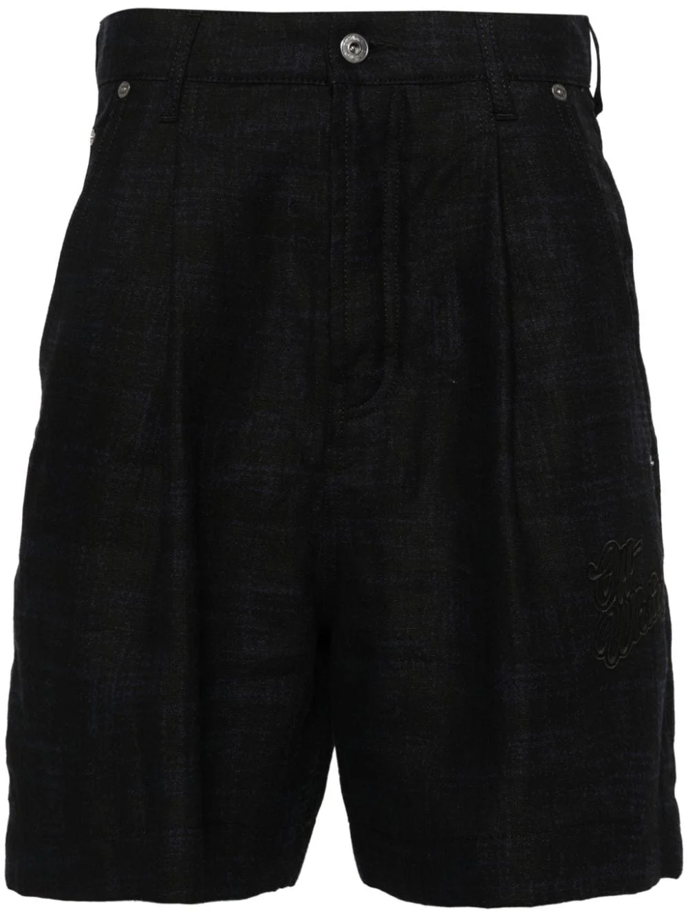 90s Logo linen shorts Highlights - Midnight blue - Linen/flax - Check pattern - Belt loops - Pleat detailing - Two diagonal pockets to the sides - Embroidered logo to the front - Logo patch to the rear - Two rear patch pockets - Button fly fastening Made in Italy Composition Outer: Linen/Flax 100% Lining: Polyester 65%, Cotton 35% SIZE & FIT Model measurements Height 6 ft 0 in(1.84 m) Bust/Chest 35.82 in(91 cm) Hips 37 in(94 cm) Waist 28.34 in(72 cm) FittingInformation Designed for a straight-leg fit, offering an unrestricted and comfortable fit over the leg Made from a midweight non-stretch fabric This piece fits true to size – take your usual size Washing instructions Hand Wash