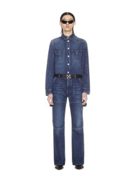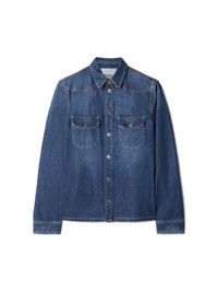 Denim shirt with silver details buttons as closure.Two flat pocket at front.Spread collar.Slim fit MATERIALS Lining: 100% Cotton Outer: 100% Cotton FITTING Model Min Jun wears size M Height 6' 3" (190 cm) Chest: 35" (90 cm) Waist: 27" (70 cm)