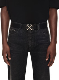 This 100% leather belt features an arrow logo buckle and signature quote. Made in Italy. MATERIALS 100% Calf Leather FITTING Height: 3,5 cm
