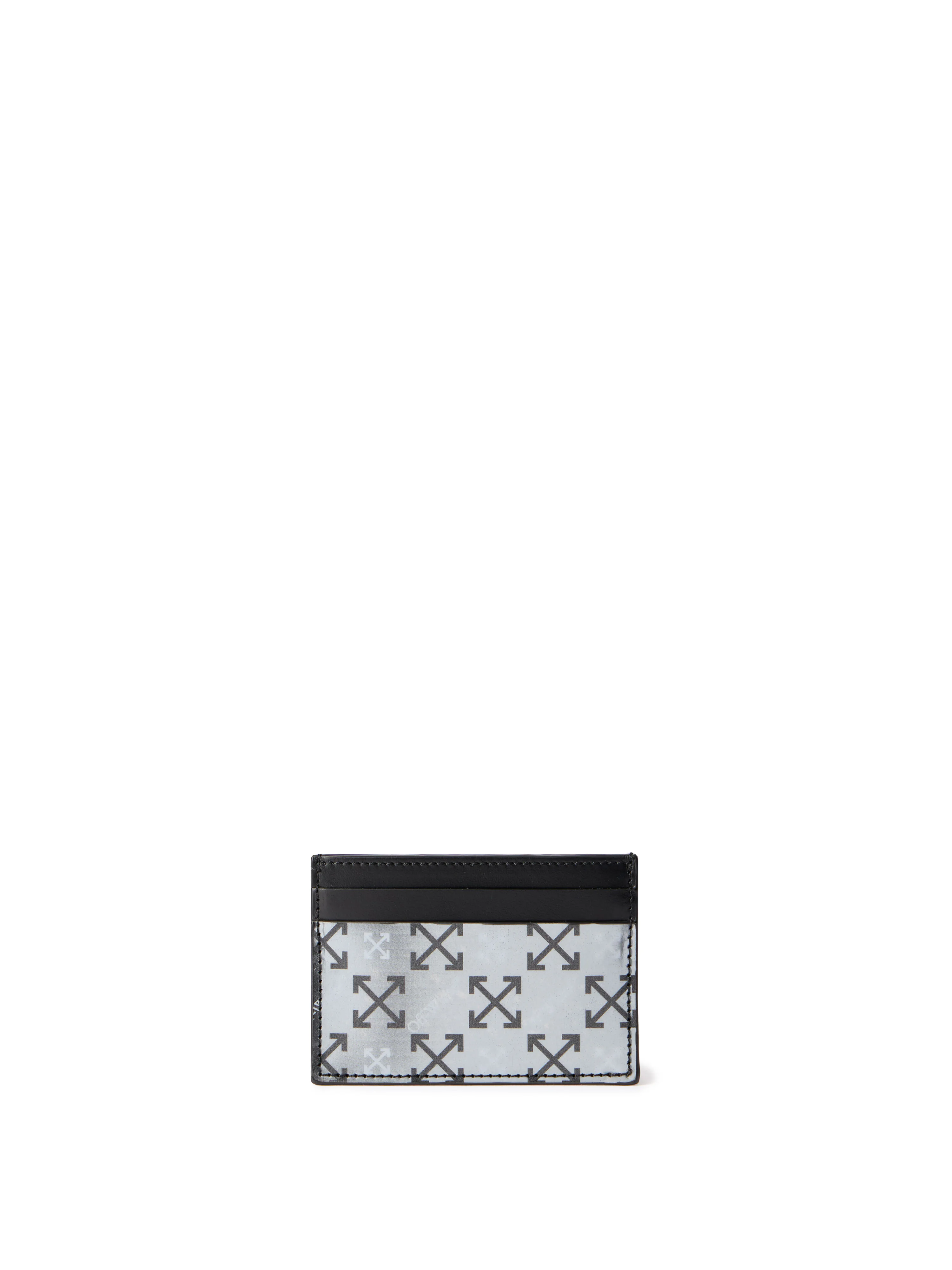 Reflective card case in a sleek design with signature arrow motifs, crafted for modern utility. - Reflective finish with iconic arrow patterns - Sleek card slots for organized storage - Compact construction for easy portability - Technical design with urban influence - Signature #Off-White# branding - Made in Italy DETAILS - Material: 1 100% Cotton, Material: 2 100% Viscose, Material: 1 100% Calf Leather, Material: 2 100% Calf Leather - Code: OMND09RF25LEA0011080