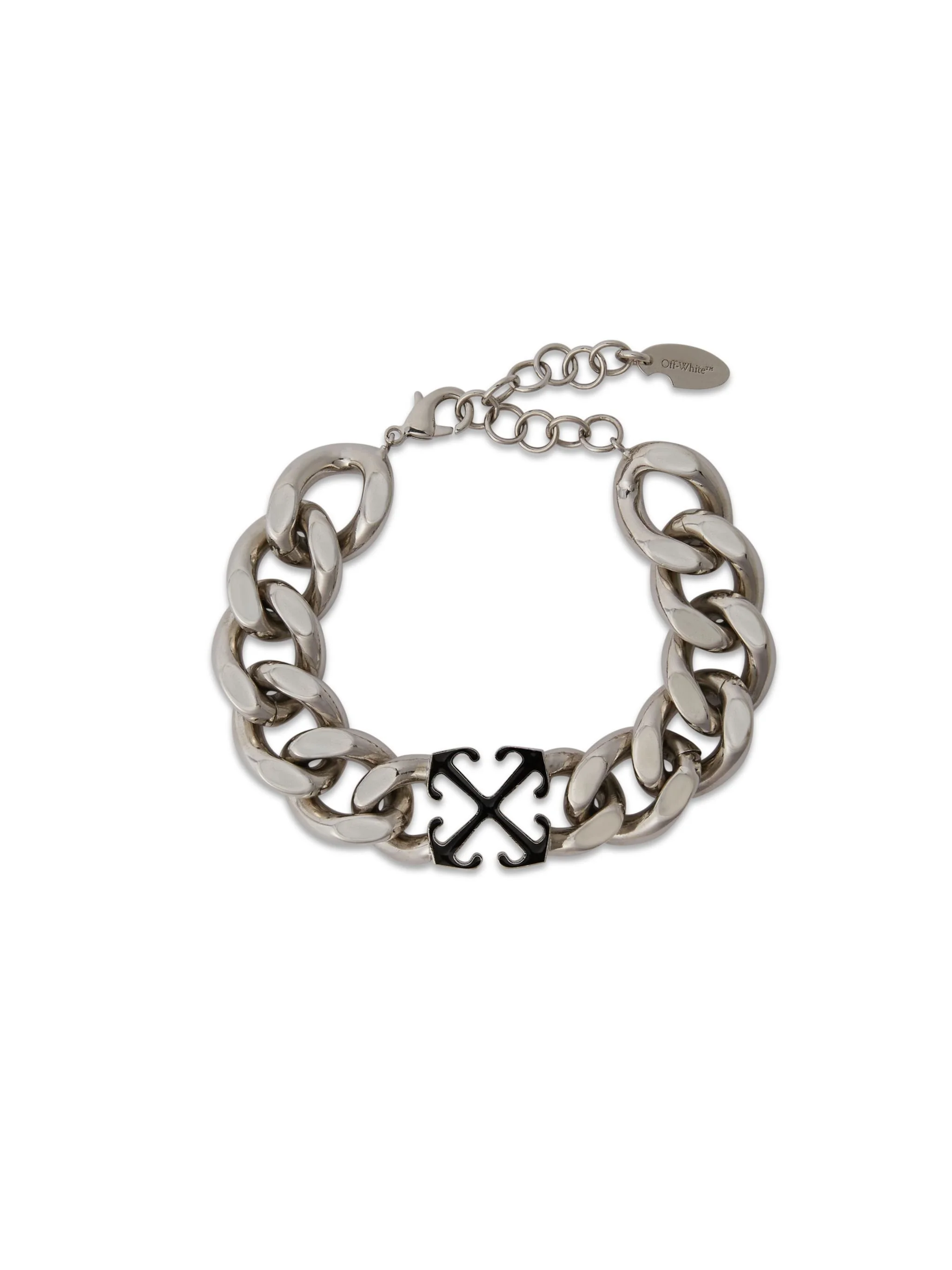 This 100% brass chain bracelet has a silver finish and an enameled arrow logo. Made in Italy. DETAILS - Material:Brass 100% - Code: OMOA106C99MET0017210