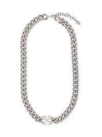 Chunky chain necklace in silver-tone metal, detailed with the signature Off-White™ Arrows motif for a bold, industrial-inspired statement. - Polished silver-tone finish - Signature Arrows logo plaque at center - Chunky curb-link chain design - Adjustable lobster clasp fastening - Engraved logo tag at closure DETAILS - 100% Brass - Code: OMOB15DC99MET0017200