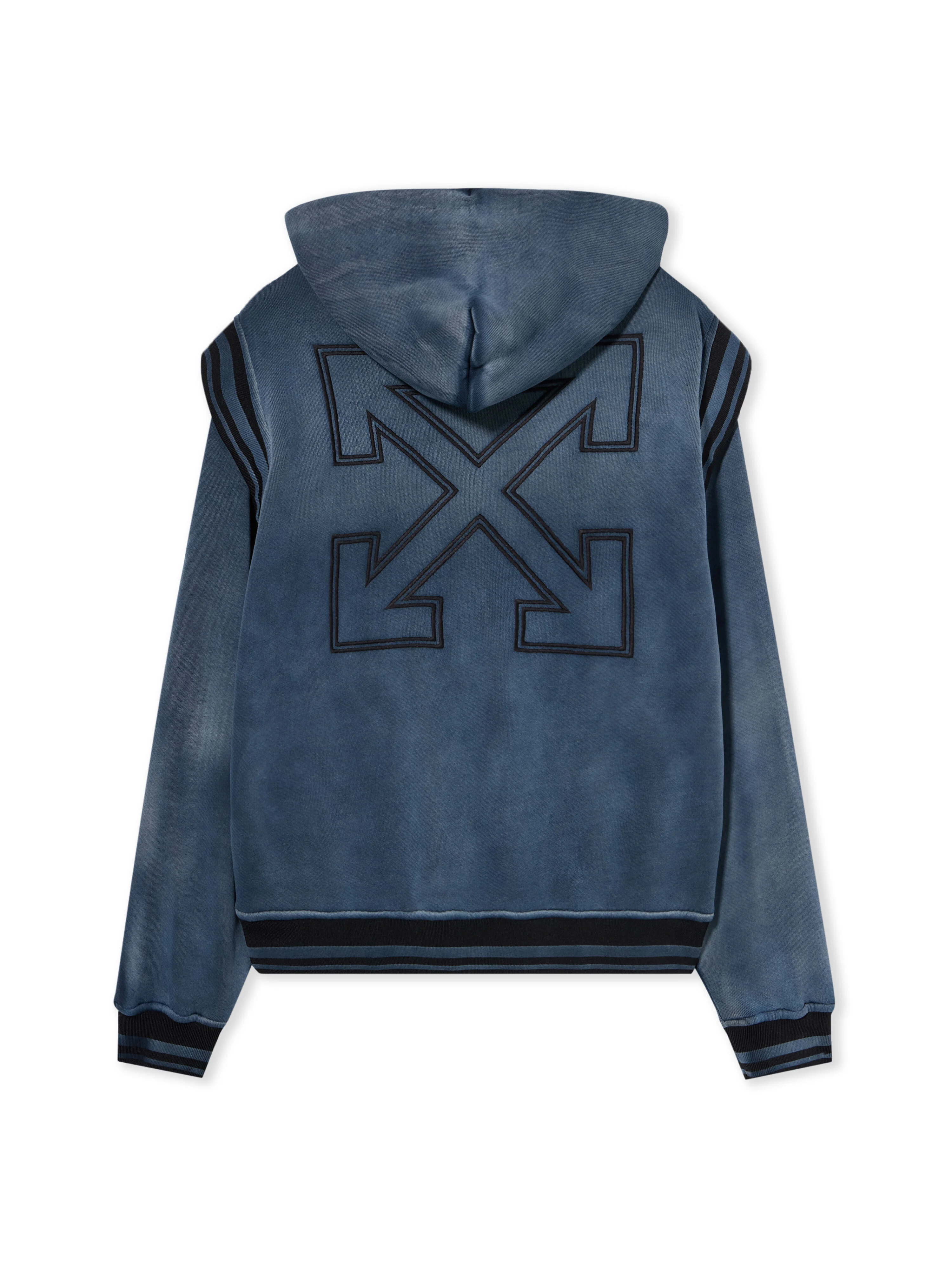 <p>Embrace the urban aesthetic with the Arrow Fleece Varsity Hoodie, crafted for a modern silhouette and adorned with iconic Off-White™ motifs.</p><ul type="circle"><li>Constructed from premium fleece fabric</li><li>Ribbed trims enhance structure</li><li>Front stud fastening for ease</li><li>Signature Off-White™ arrows on the rear</li><li>Integrated hood for versatile styling</li></ul> DETAILS - Material: 100% Cotton, Rib Details: 100% Cotton - Code: OMEK003F25FLE0024343