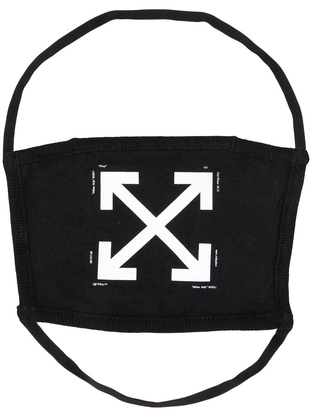 Arrows face mask Off-White is coming with you, wherever it is you're going. This 100% cotton face mask, ergonomically designed to fit the contours of the face, is ready for a new adventure. The question is: are you? Highlights - Black - Cotton - Logo print to the front - Tonal stitching - Elasticated straps - Upper elastic length 34 cm / lower elastic length 22 cm - Instructions: wear the double elastic around the head and neck for comfort and stability. the smaller elastic goes first around the neck, the second elastic goes over the ears - This face mask is not a suitable substitute for ppe (personal protective equipment) and we at farfetch cannot authenticate any claims of medical or protective benefits of its use. due to the intended purpose of this product, we will not be able to accept returns unless the item is damaged or faulty upon delivery to you Imported Composition Cotton 100%