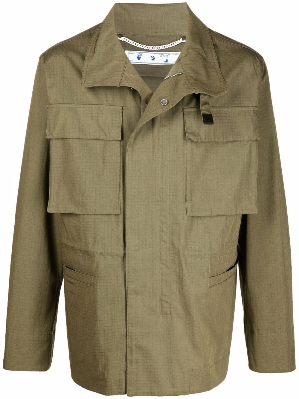 Arrows lightweight jacket Continuing to approach branding with a bold attitude, Off-White presents this green lightweight jacket showcasing the brand's iconic Arrows motif to the rear. Imported Composition Cotton 100% SIZE & FIT Model measurements Height 6 ft 3 in(1.9 m) Bust/Chest 38.18 in(97 cm) Hips 37.79 in(96 cm) Waist 32.67 in(83 cm) FittingInformation This piece fits true to size. We recommend you get your regular size Cut for a loose fit Made with a mid-weight non-stretch fabric Washing instructions Hand Wash