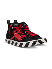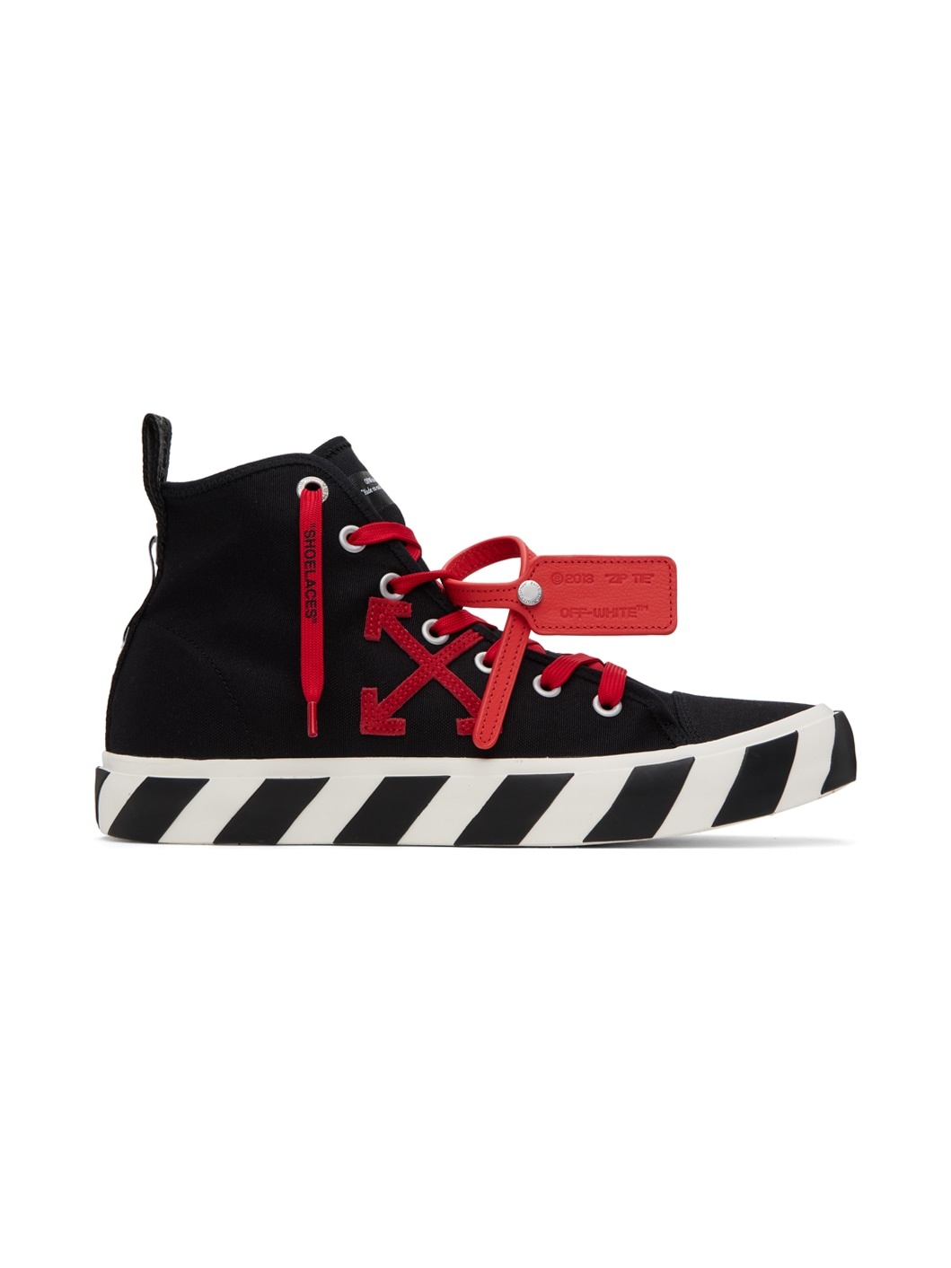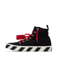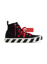 High-top canvas sneakers in black. · Zip tie at lace-up closure · Logo printed at tongue · Logo-woven pull-loop at heel collar · Textile logo patch at heel tab · Suede logo appliqué at outer side · Striped rubber midsole · Treaded rubber outsole Supplier color: Black/Red