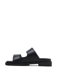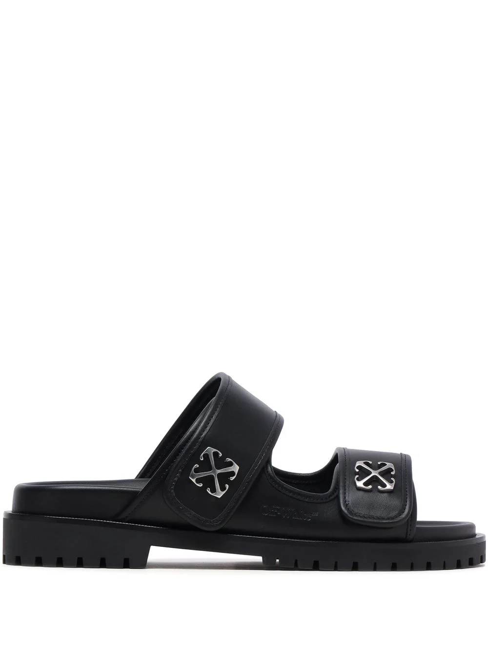 Arrows-motif slippers Highlights - Black - Touch-strap fastening - Rubber lug sole - Round open toe - Double-strap design Made in Italy Composition Lining: Calf Leather 100% Sole: Rubber 100% Outer: Calf Leather 100%