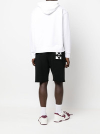 Arrows-print cotton track shorts Merging comfort with style in a casual combination, Off-White presents these cotton track shorts. In a black colourway, the pair boasts the brand's signature Arrows print and a logo print in contrasting white. Imported Composition Cotton 100% SIZE & FIT Model measurements Height 6 ft 0 in(1.84 m) Bust/Chest 36.2 in(92 cm) Hips 38.6 in(98 cm) Waist 29.1 in(74 cm) FittingInformation This piece fits true to size. We recommend you get your regular size Regular fit Made with a mid-weight fabric