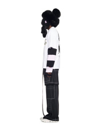 This skate fit t-shirt features the "ASK LEGAL" message with dice on the front and an oversized arrow logo on the reverse. 100% cotton. As seen in the Fall Winter 2024 Show entitled "Black by Popular Demand". MATERIALS 100% Cotton FITTING MOMO WEARS SIZE M HEIGHT: 6' 1” (185 CM) BUST: 37” (94 CM) WAIST: 29” (74 CM) HIPS: 38” (96 CM)