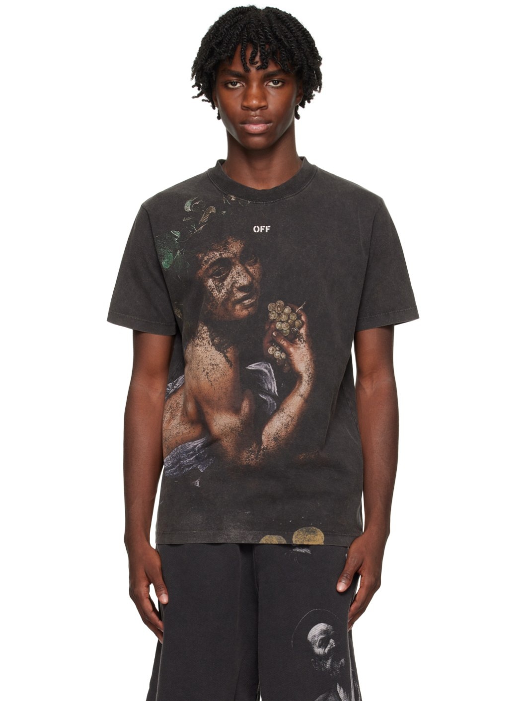 Cotton jersey T-shirt. Fading throughout. · Rib knit crewneck · Logo printed at chest and back collar · Graphic printed at front Supplier color: Black multicolor