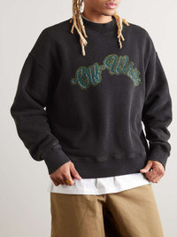 Off-White's '90s-inspired sweatshirt is made from soft cotton-jersey that's prefaded for a vintage feel. Cut for a relaxed fit, it's printed with a distressed logo across the chest and detailed on the back with a graphic of Bacchus, the Greco-Roman god of wine and festivity. Size & Fit - Model wears a size larger to achieve a looser fit - Weighted, slightly stretchy fabric - Model is shown wearing a M - Model measures: chest 36"/ 92cm, height 6'0"/ 183cm Details & Care - Multicoloured cotton-jersey - 100% cotton, trim: 95% cotton, 5% elastane - Machine wash
