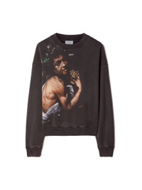 Long sleeves sweatshirt in black with Bacchius design at front.OFF script in white at front.Ribbed hem and neck.Crewneck collar.Regular fit MATERIALS 100% Cotton FITTING Model Min Jun wears size M Height 6' 3" (190 cm) Chest: 35" (90 cm) Waist: 27" (70 cm)
