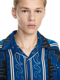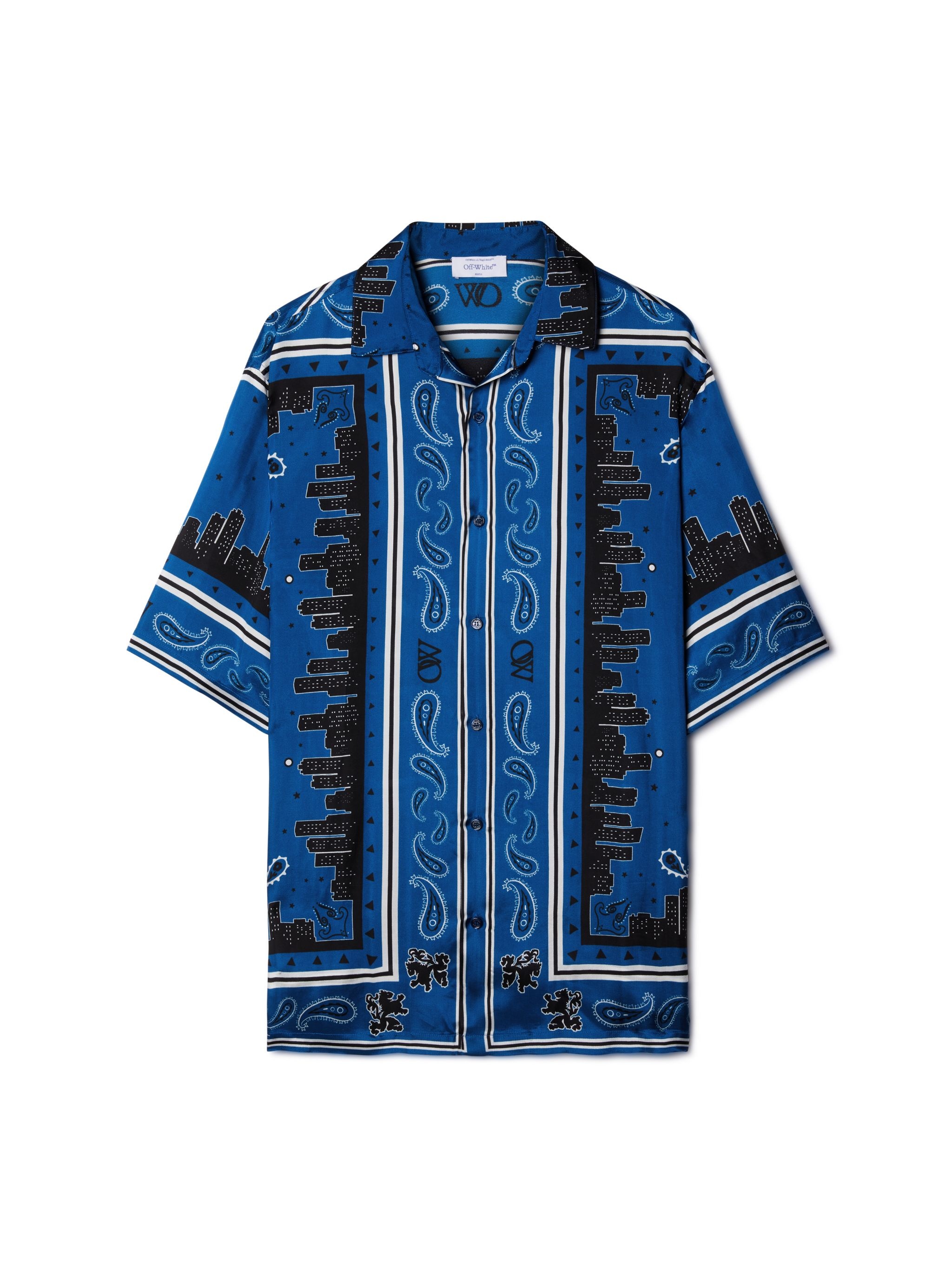 This oversized bowling shirt is crafted from silky viscose and features an all-over bandana-style print with skyline illustrations. Made in Italy. MATERIALS 100% Viscose FITTING Model Gabriel Noah wears size M Height 6' 1" (186 cm) Chest: 33" (85 cm) Waist: 27" (69 cm)