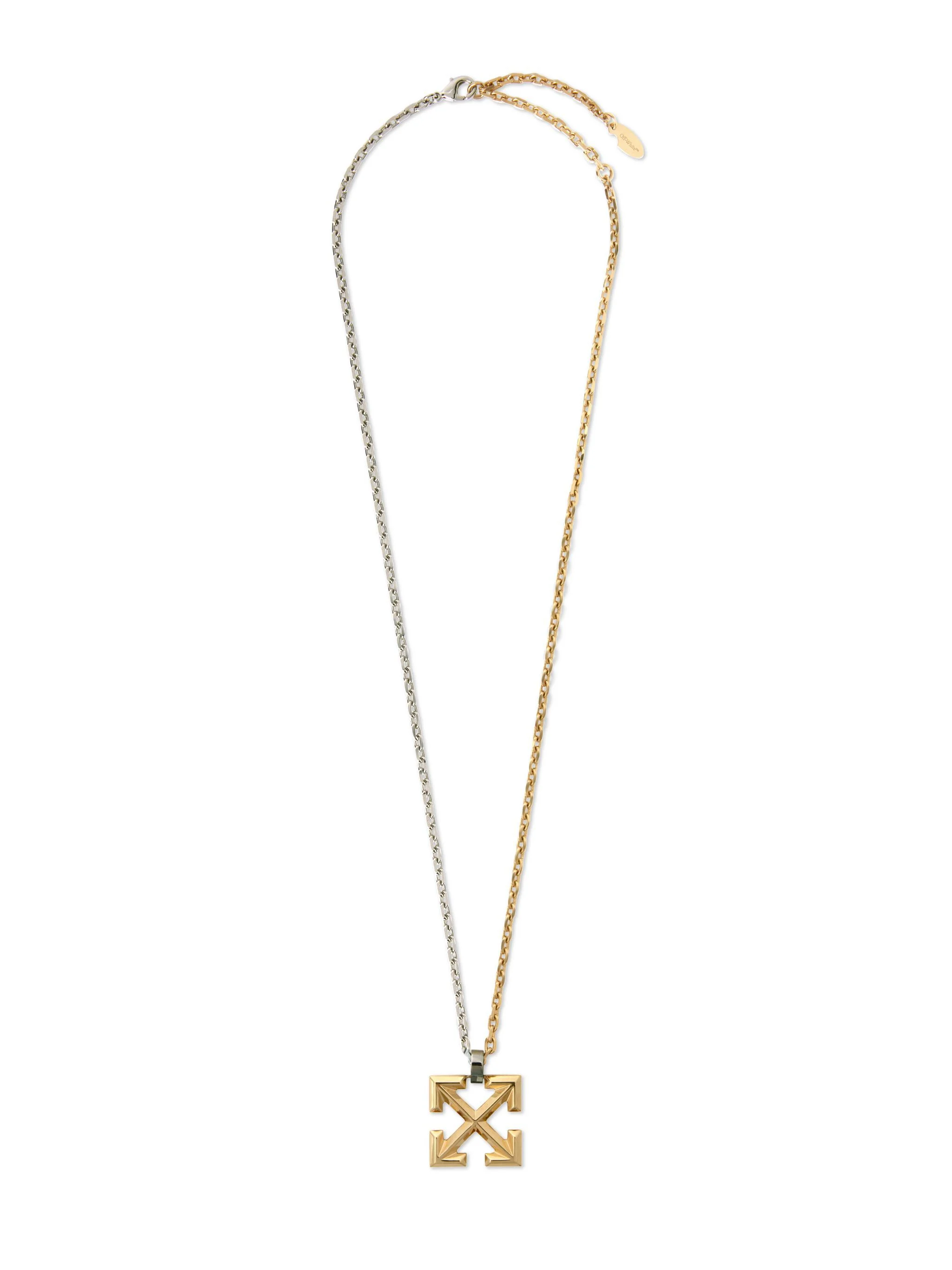 This 100% brass chain necklace has a bicolor gold and silver finish and features an arrow logo pendant. Made in Italy. DETAILS - Material:Gold Plated Brass 100% - Code: OMOB15LS25MET0017276
