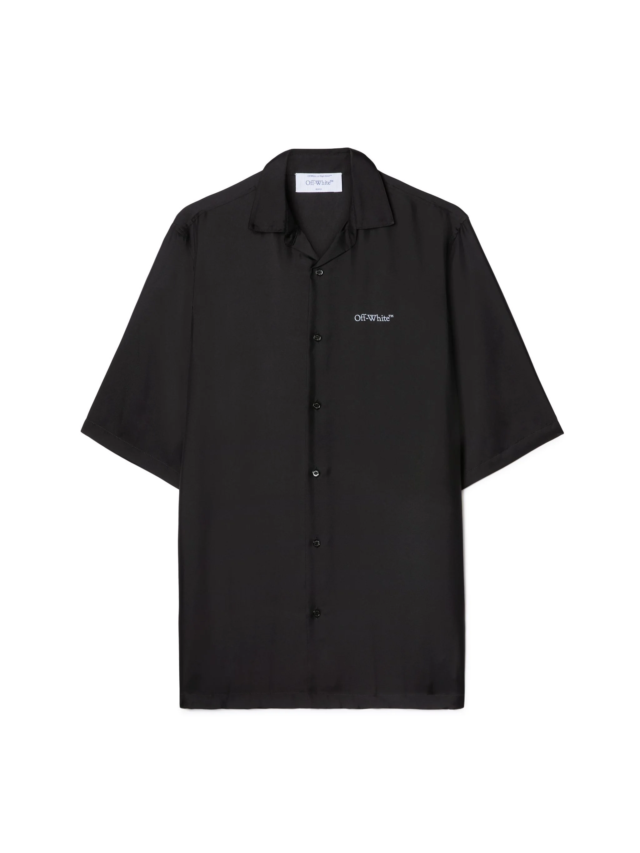 This 100% silk bowling shirt features a small bookish logo on the front and a large arrow with a portrait inspired by African printed fabrics on the reverse. Relaxed fit. DETAILS - NALLA WEARS SIZE 48 HEIGHT: 6' (184 CM) BUST: 35” (89 CM) WAIST: 27“ (70 CM) HIPS: 35” (89 CM) - Material:Silk 100% - Code: OMGG013S25FAB0091042