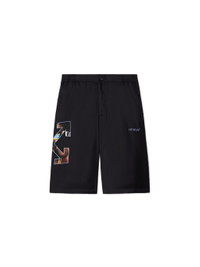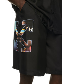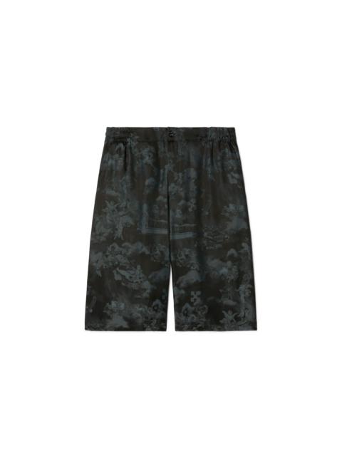 These 100% silk bowling shorts feature a small bookish logo and a large arrow with a portrait inspired by African printed fabrics on the side. Made in Italy. MATERIALS Outer: 100% Silk Lining: 100% Cotton FITTING NALLA WEARS SIZE 48 HEIGHT: 6' (184 CM) BUST: 35” (89 CM) WAIST: 27“ (70 CM) HIPS: 35” (89 CM)