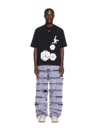 This skate fit t-shirt features a thrown dice graphic and a small stamp logo. 100% cotton. As seen in the Fall Winter 2024 Show entitled "Black by Popular Demand". MATERIALS 100% Cotton FITTING MOMO WEARS SIZE M HEIGHT: 6' 1” (185 CM) BUST: 37” (94 CM) WAIST: 29” (74 CM) HIPS: 38” (96 CM)