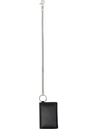 Buffed calfskin bifold wallet. · Logo printed at face · Card slot and embossed logo at back face · Keyring with adjustable curb chain at top · Four card slots and two patch pockets at interior · One note slot · H4.5" x W3" x 0.5" Supplier color: Black/White Calfskin. Made in Italy 252607M164002