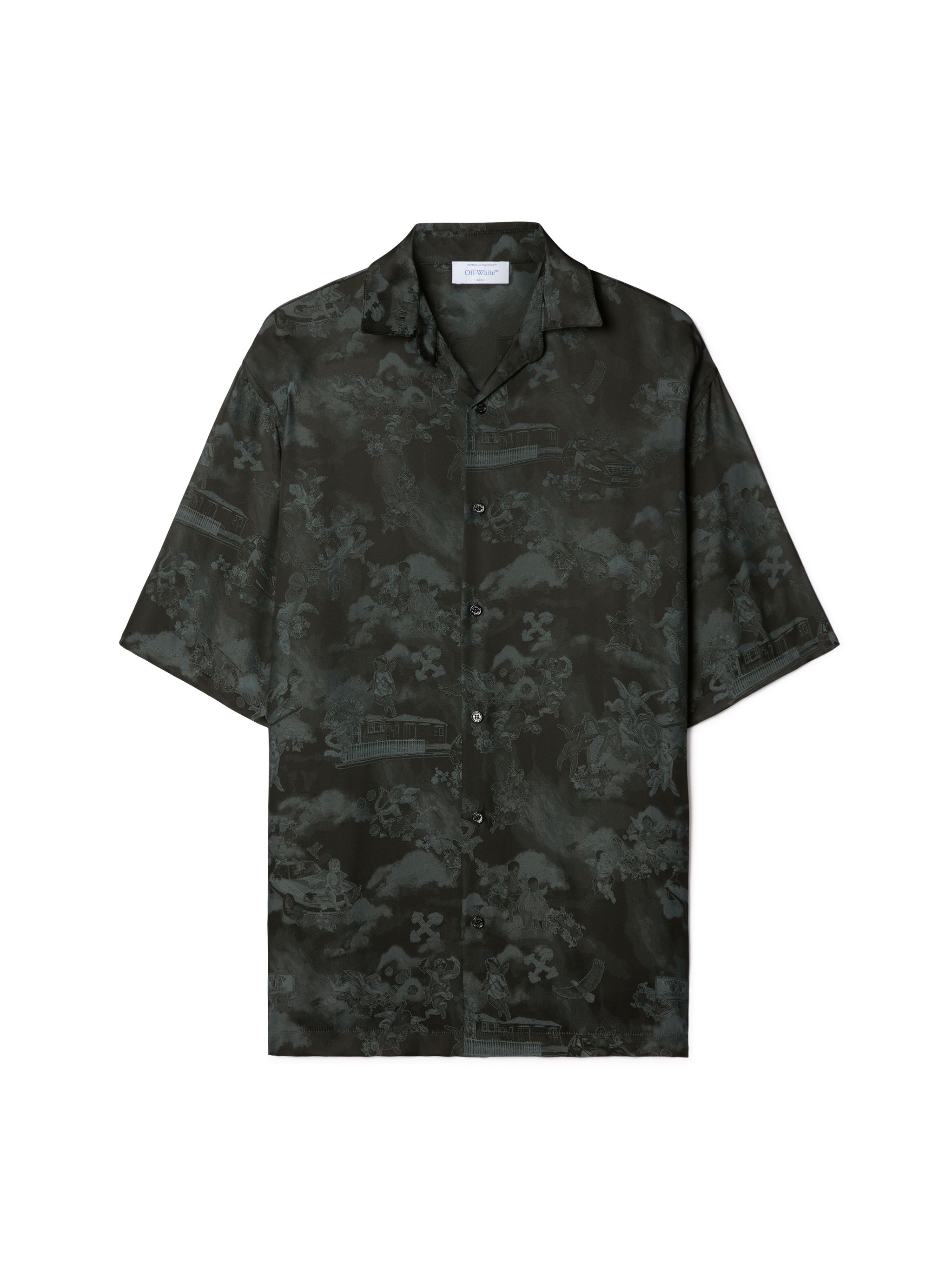 This jacquard bowling shirt features an all-over fresco design with cherubs and cars. Made in Italy. DETAILS - NALLA WEARS SIZE 48 HEIGHT: 6' (184 CM) BUST: 35” (89 CM) WAIST: 27“ (70 CM) HIPS: 35” (89 CM) - Material:Acetate 50%, viscose 50% - Code: OMGG013S25FAB0050200