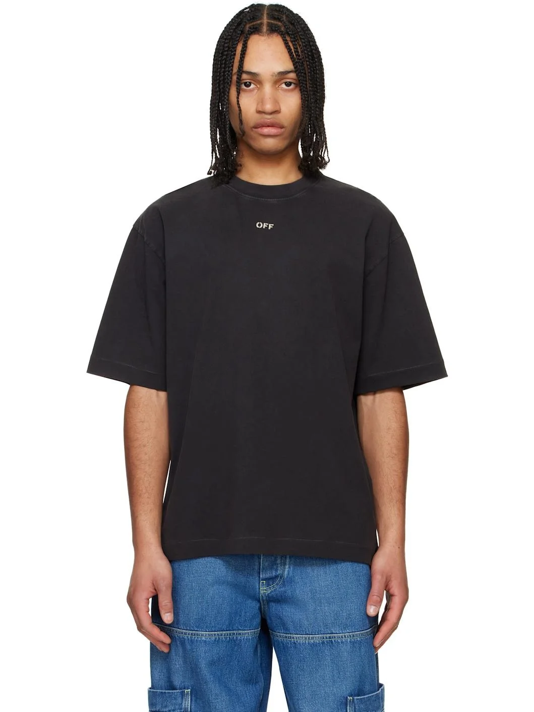 Cotton jersey T-shirt. Fading throughout. · Rib-knit crewneck · Logo printed at chest · Vented side seams · Dropped shoulders · Logo graphic applique and printed graphic at back Supplier color: Vintage black Body: 100% cotton. Trim: 95% cotton, 5% elastane. Made in Portugal 251607M213006