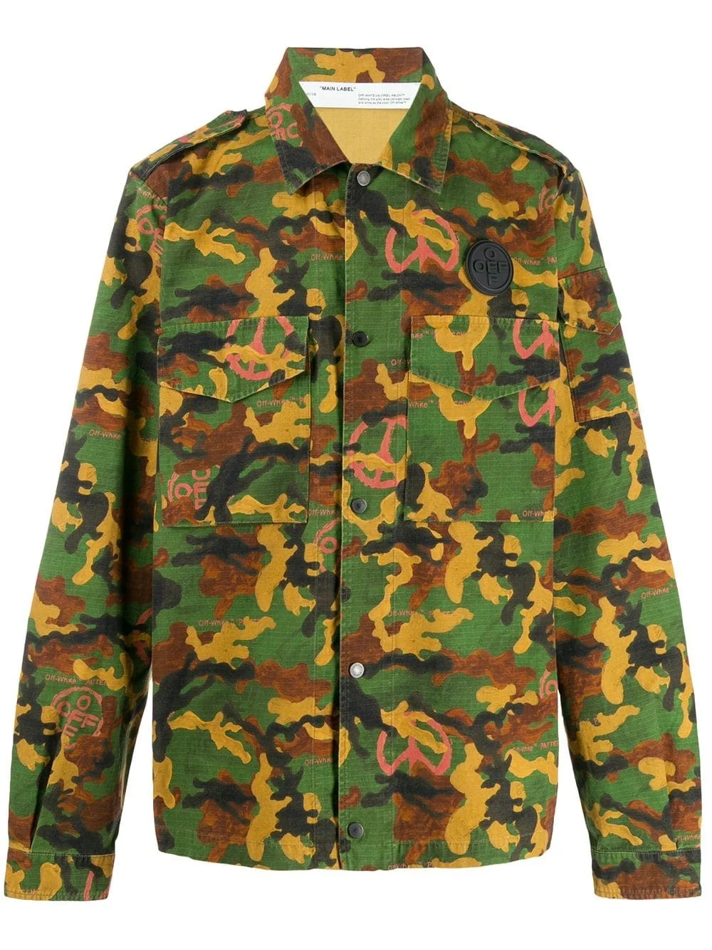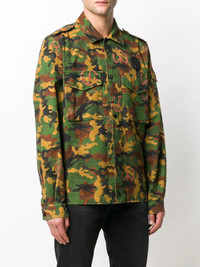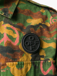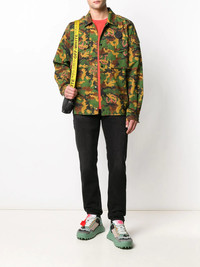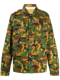 camouflage print shirt It's true - camo is the new black. Go green for this camouflage print shirt from Off-White, crated from cotton. Simply wear on it's own or layer up with a T-shirt. The choice is yours. Featuring a cutaway collar, a front button fastening, front flap pockets and long sleeves. Made in Italy Composition Cotton 100% SIZE & FIT Model measurements Height 6 ft 2 in(1.87 m) Bust/Chest 37.79 in(96 cm) Hips 37.79 in(96 cm) Waist 30.31 in(77 cm) FittingInformation This piece fits true to size. We recommend you get your regular size Cut for a loose fit Made with a mid-weight non-stretch fabric Washing instructions Machine Wash
