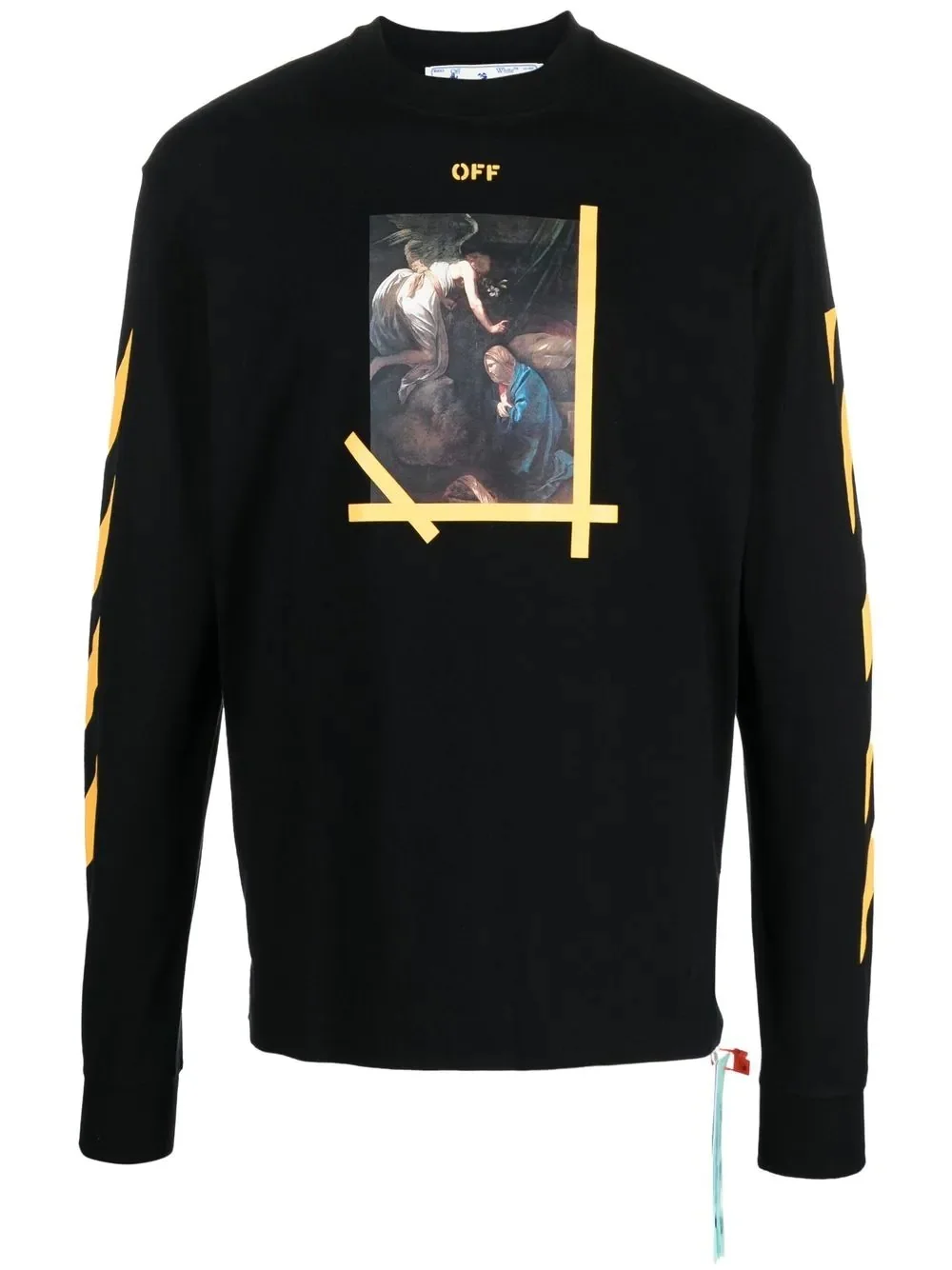 Caravaggio painting cotton T-shirt Inspired by the Italian painter Michelangelo Merisi da Caravaggio, one of Off-White’s most referenced artists, this long-sleeve cotton T-shirt features a Caravaggio print at the front. The laid-back design is complete with the Arrows motif and Diag stripe print for a distinctly branded finish. Made in Italy Composition Cotton 100% SIZE & FIT Model measurements Height 6 ft 2 in(1.87 m) Bust/Chest 38.18 in(97 cm) Hips 36.61 in(93 cm) Waist 29.13 in(74 cm) Measurement CHEST 38.58 in(98 cm) SLEEVE LENGTH 26.37 in(67 cm) Shoulder Width 16.53 in(42 cm) LENGTH 25.98 in(66 cm) FittingInformation This piece fits true to size. We recommend you get your regular size Cut for a relaxed fit Made with a mid-weight fabric Washing instructions Machine Wash