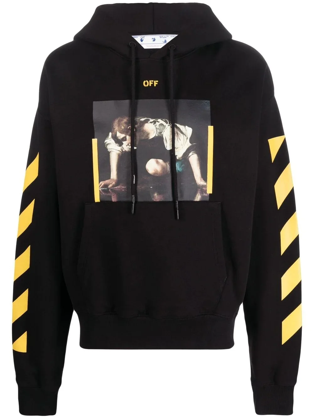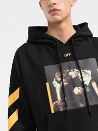 Caravaggio-print hoodie Off-White adorns this classic black hoodie with an image of one of the Italian painter Caravaggio's works. Juxtaposed on the back is the label's key identifier - the Arrow motif. Imported Composition Cotton 100% SIZE & FIT Model measurements Height 6 ft 2 in(1.89 m) Bust/Chest 37 in(94 cm) Hips 37 in(94 cm) Waist 28.93 in(73.5 cm) Measurement CHEST 44.09 in(112 cm) SLEEVE LENGTH 25.19 in(64 cm) Shoulder Width 22.44 in(57 cm) LENGTH 23.22 in(59 cm) FittingInformation This piece fits true to size. We recommend you get your regular size Cut for a loose fit Made with a mid-weight fabric Washing instructions Machine Wash