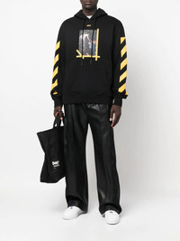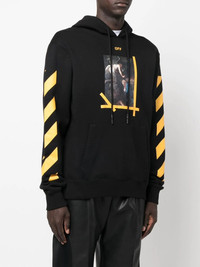 Caravaggio-print hoodie Caravaggio-print hoodie from OFF-WHITE featuring cotton, signature Caravaggio print, logo print at the chest, signature Diag-stripe print, signature Arrows motif, long sleeves, drawstring hood, front pouch pocket and black/yellow. Imported Composition Cotton 100% SIZE & FIT Model measurements Height 6 ft 2 in(1.87 m) Bust/Chest 36.41 in(92.5 cm) Hips 37 in(94 cm) Waist 29.52 in(75 cm) FittingInformation This piece fits true to size. We recommend you get your regular size Cut for a relaxed fit Made with a mid-weight fabric Washing instructions Machine Wash