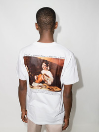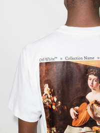 Caravaggio Painting cotton T-shirt Off-White often draws inspiration from Renaissance artwork to create its designs. Here, the brand decorates the classic silhouette of a white T-shirt using Caravaggio's The Lute Player, painted in Italy in 1595-1596. Imported Composition Cotton 100% SIZE & FIT Model measurements Height 6 ft 2 in(1.88 m) Bust/Chest 36.61 in(93 cm) Hips 35.82 in(91 cm) Waist 27.95 in(71 cm) Measurement CHEST 40.15 in(102 cm) Shoulder Width 18.11 in(46 cm) FittingInformation This piece fits true to size. We recommend you get your regular size Cut for a relaxed fit Made with a mid-weight fabric Washing instructions Machine Wash