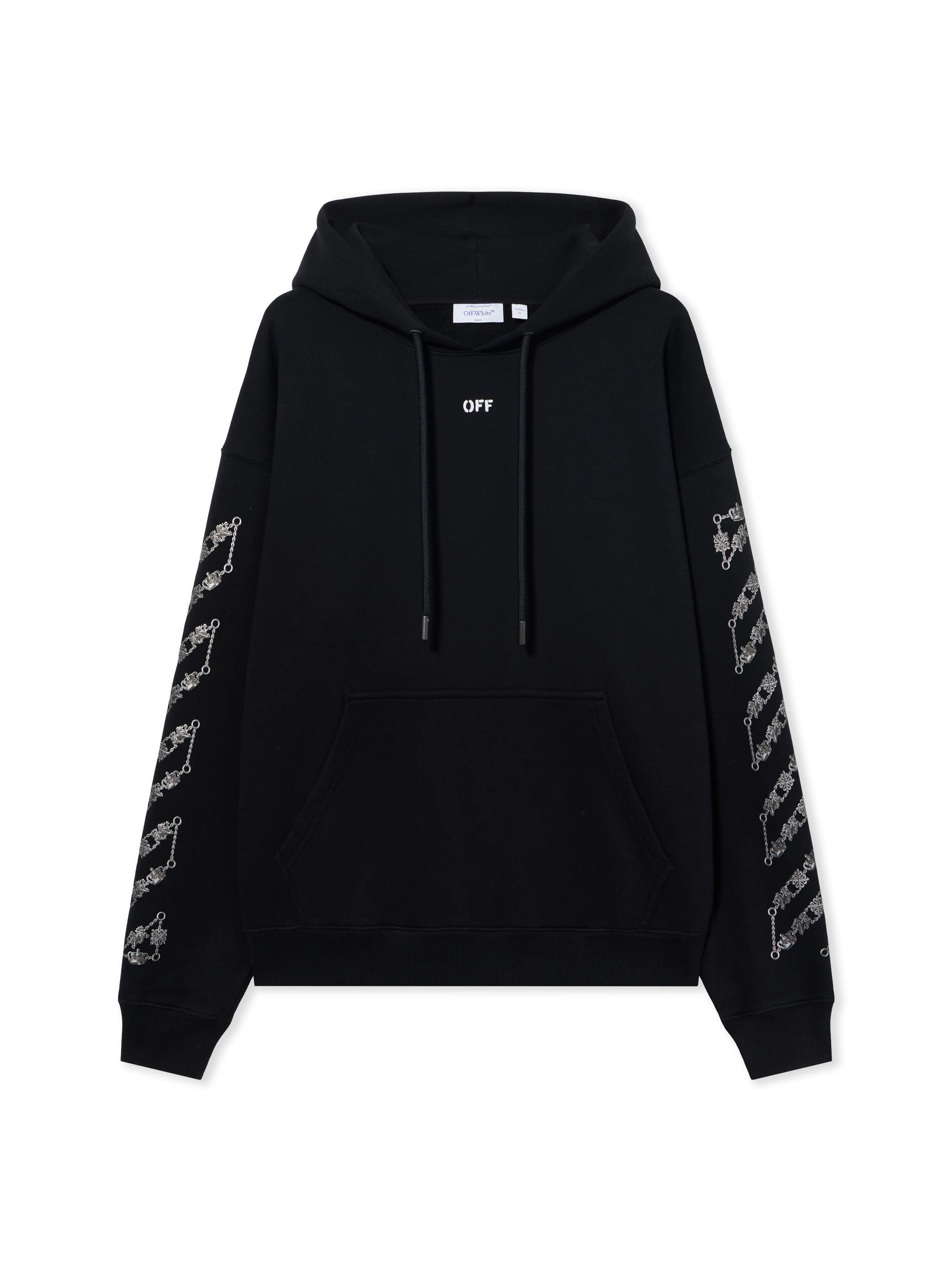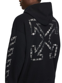 The Chain Arrow Diagonal Skate Hoodie features signature elements formed by a repetition of digitally printed chain-inspired elements and small charms. A shiny silver effect enhances an elevated casual aesthetic. - Front logo detail - Chain Arrow Diagonal motif on sleeves - Chain Arrow graphic on the back - Drawstring hood design - Kangaroo front pocket - Ribbed hem and cuffs DETAILS - Fabric: 100% Cotton - Code: 44MBB085S26F005001