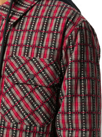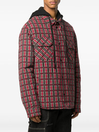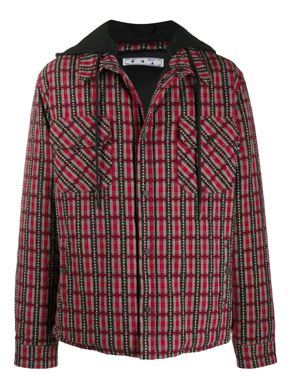 check-pattern hooded jacket Drizzly days are now welcome. This check pattern jacket from Off-White is topped with a hood, so you can face chilly days in style. Checkmate. Highlights - Red/black/grey - Cotton-blend - Check pattern - Drawstring hood - Front button fastening - Long sleeves - Two chest flap pockets - Two side button-fastening pockets Made in Italy Composition Cotton 95%, Polyester 3%, Polyamide 2% Washing instructions Read Manufacturer Guidelines