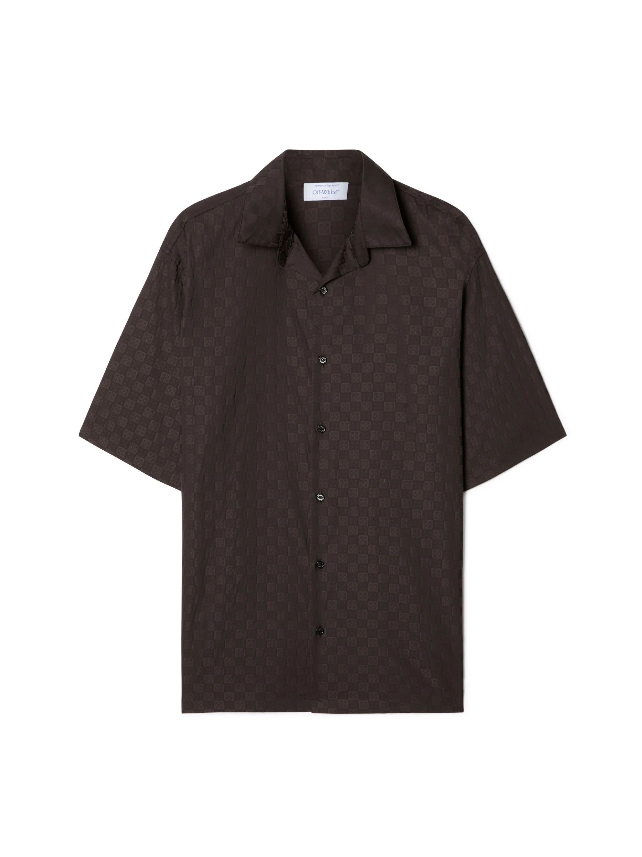 This cotton-blend jacquard bowling shirt features an all-over checked finish with small arrow logos. Made in Italy. DETAILS - NALLA WEARS SIZE 48 HEIGHT: 6' (184 CM) BUST: 35” (89 CM) WAIST: 27“ (70 CM) HIPS: 35” (89 CM) - Material:Cotton 71%, Polyamide 29% - Code: OMGG013S25FAB0046G00