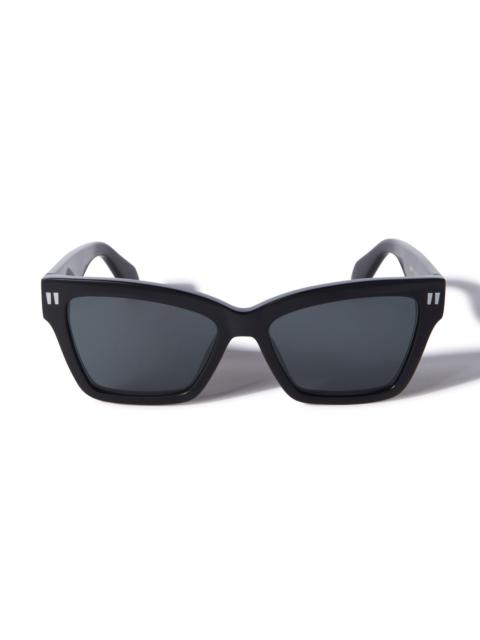 These acetate sunglasses feature a subtle cat-eye shape to their geometric silhouette, with a thicker top edge that transitions to a slimmer profile. They are completed with signature quotation marks on the temples and metal logos on the arms. Made in Italy. MATERIALS 100% Acetate FITTING Bust 0cm Height 0cm Hips 0cm Waist 0cm