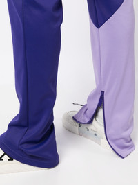 colourblock track pants Off-White gives these track pants a subtle branded touch by accenting them with logo lettering on the left thigh. The colour-block design acts as a vibrant base for the signature brand accents. Highlights - Purple - Cotton blend - Colourblock design - Elasticated waistband - Two side slit pockets - Logo print at left thigh - Rear zip-up pocket - Straight legs Imported Composition Body: Polyamide 58%, Cotton 38%, Elastane 4% Lining: Acetate 65%, Polyester 35% SIZE & FIT Model measurements Height 6 ft 2 in(1.87 m) Bust/Chest 34.25 in(87 cm) Hips 36.22 in(92 cm) Waist 29.52 in(75 cm) Washing instructions Machine Wash
