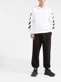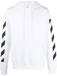 Diag Arrow hoodie Diag Arrow hoodie from OFF-WHITE featuring black/white, cotton, diagonal stripe pattern, signature Arrows motif, drawstring hood, ribbed cuffs, long sleeves, straight hem and drawstring hood. Imported Composition Cotton 100% SIZE & FIT Model measurements Height 6 ft 2 in(1.89 m) Bust/Chest 37 in(94 cm) Hips 37 in(94 cm) Waist 28.93 in(73.5 cm) FittingInformation This piece fits true to size. We recommend you get your regular size Cut for a relaxed fit Made with a mid-weight fabric Washing instructions Machine Wash