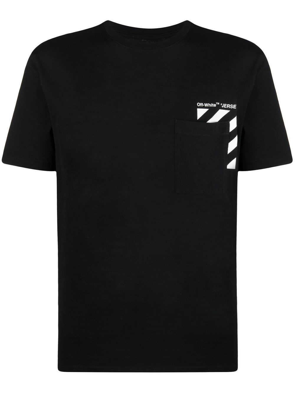 Description Diag-print T-shirt Highlights ['* black', '* cotton', '* signature Diag-stripe print', '* logo print to the front', '* signature quote motif', '* crew neck and short sleeves.'] Made in Portugal Composition Cotton 100%
