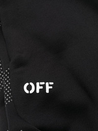 Diag Stripe print track pants Off-White showcases a sportswear-inspired aesthetic with pieces such as these track pants. Cut from comfortable stretch cotton, the pair tapers at the leg for a contemporary fit. The brand's signature Diag Stripes appear printed down the leg in a dotted pattern. Imported Composition Lining: Polyester 80%, Cotton 20% Outer: Polyamide 98%, Spandex/Elastane 2% Washing instructions Machine Wash