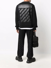Diag Tab crew-neck sweatshirt A tonal black design offers a more understated look for this Off-White sweatshirt - signature logo graphics make a subtle appearance to the front and rear of the piece. Imported Composition Cotton 100% SIZE & FIT Model measurements Height 6 ft 1 in(1.85 m) Bust/Chest 37.79 in(96 cm) Hips 37.4 in(95 cm) Waist 30.7 in(78 cm) FittingInformation This piece fits true to size. We recommend you get your regular size Cut for a relaxed fit Made with a mid-weight fabric Washing instructions Machine Wash