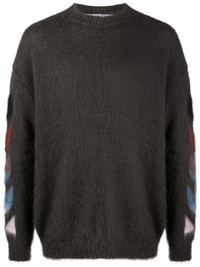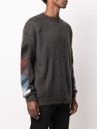 diagonal Arrows knitted jumper You just can't get enough of Off-White's diagonal stripes and arrows can you? Hey, we don't blame you, they're iconic just like this diagonal Arrows knitted jumper spun from cosy mohair-wool blend. Bet you're looking forward to colder days now. Highlights - Grey - Mohair-wool blend - Diagonal stripe pattern - Signature arrows motif - Crew neck - Drop shoulder - Long sleeves - Straight hem Made in Italy Composition Mohair 50%, Polyamide 32%, Wool 18% SIZE & FIT Model measurements Height 6 ft 2 in(1.89 m) Bust/Chest 36.22 in(92 cm) Hips 35.82 in(91 cm) Waist 28.74 in(73 cm) FittingInformation This piece fits true to size. We recommend you get your regular size Cut for a loose fit Made with a mid-weight fabric Washing instructions Hand Wash