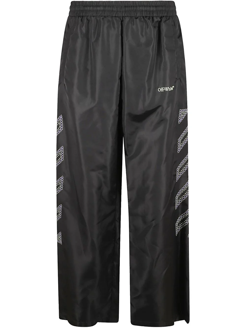 Diag-stripe print track pants Highlights - Black - Elasticated waistband - Two side welt pockets - Rear welt pocket Imported Composition Polyamide 100% Washing instructions Machine Wash